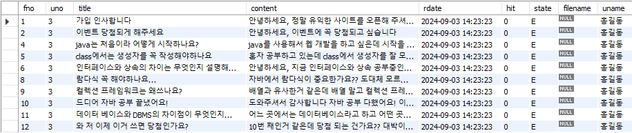 자유게시판 데이터를 조회. 이때 게시글을 작성한 작성자 이름도 함께 조회